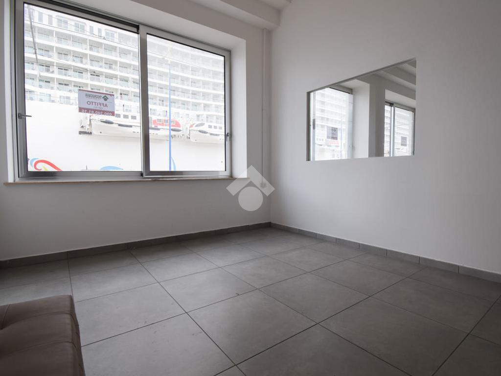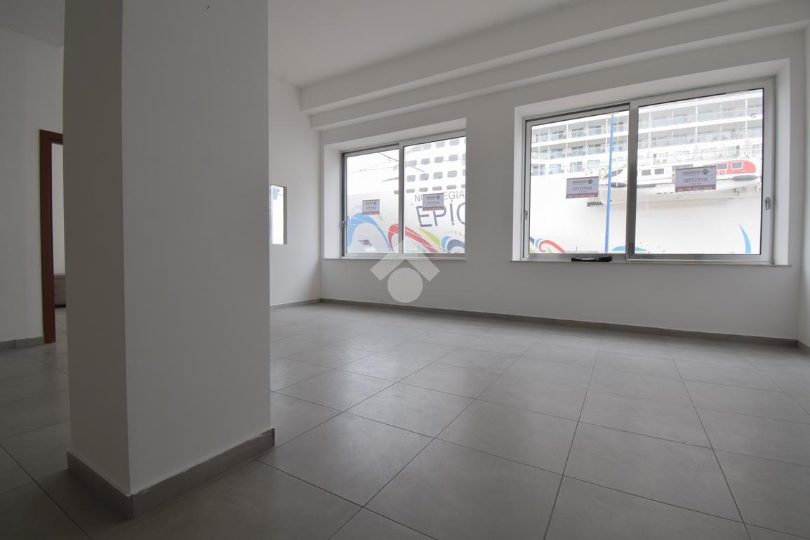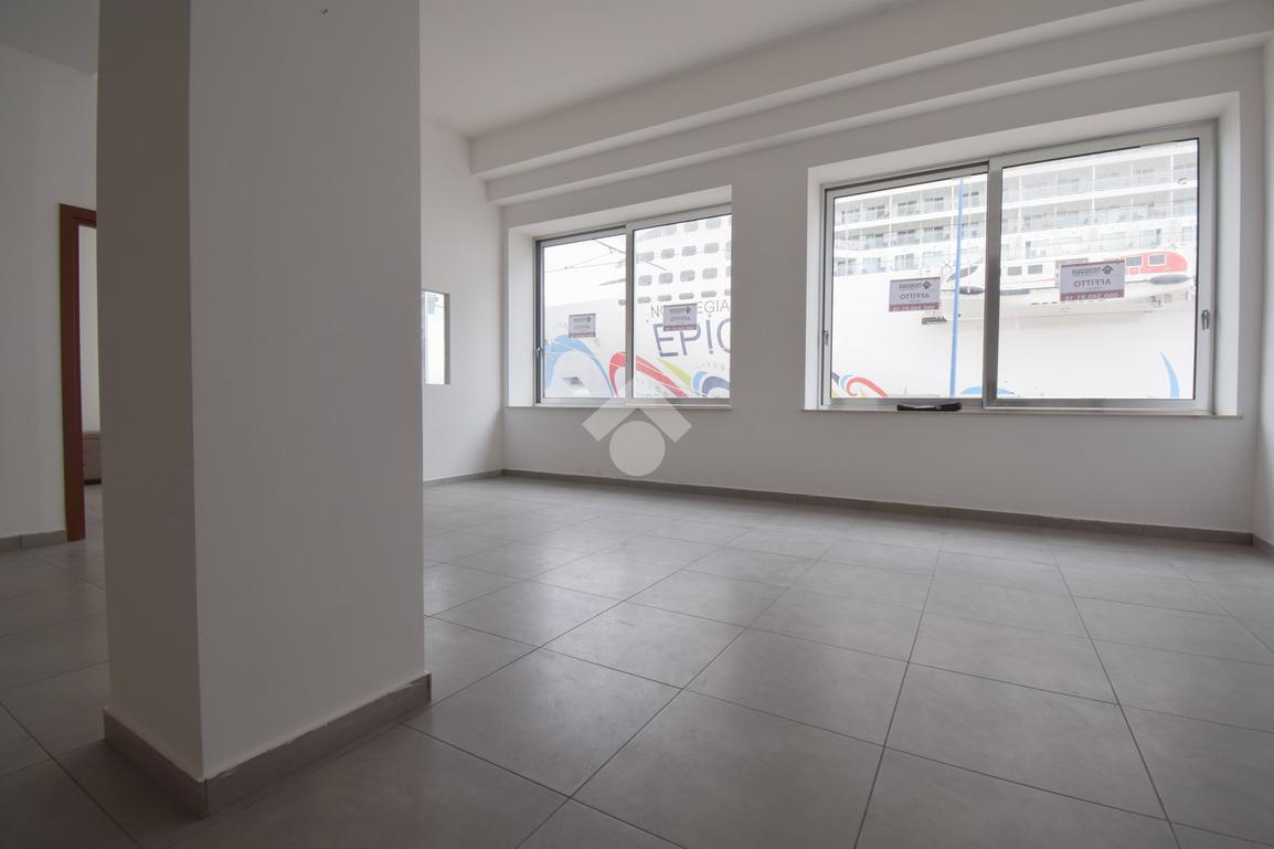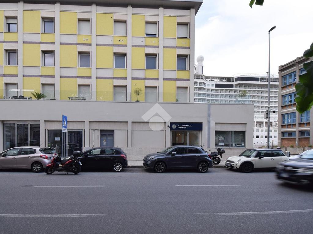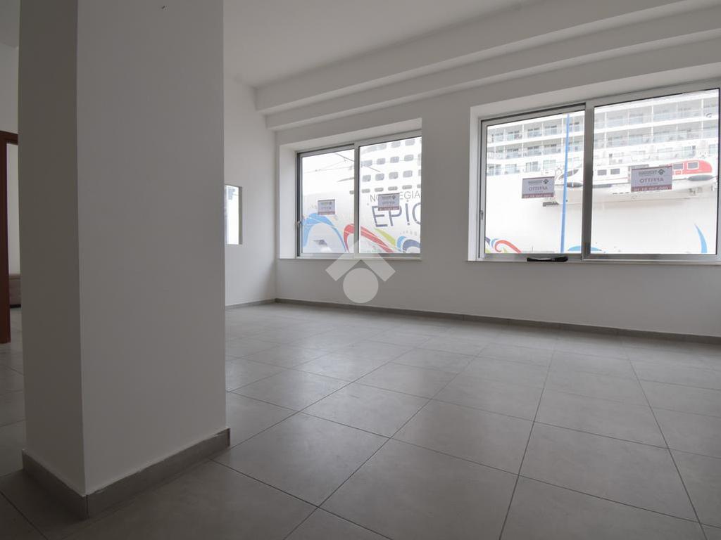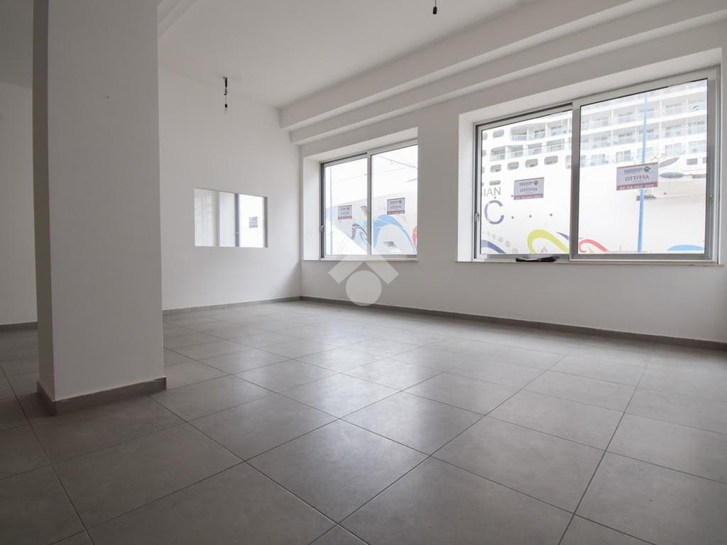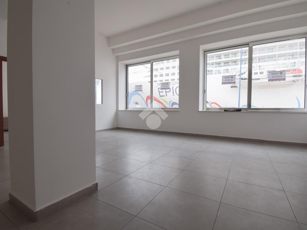 l'immobile vanta una esposizione sulla centralissima Via Garibaldi, con un ampio ingresso, e un'ampia vetrata disposta su 4 luci che offre un suggestivo afaccio panoramico sullo stretto, proprio frontalemte all'attracco delle navi da crocera