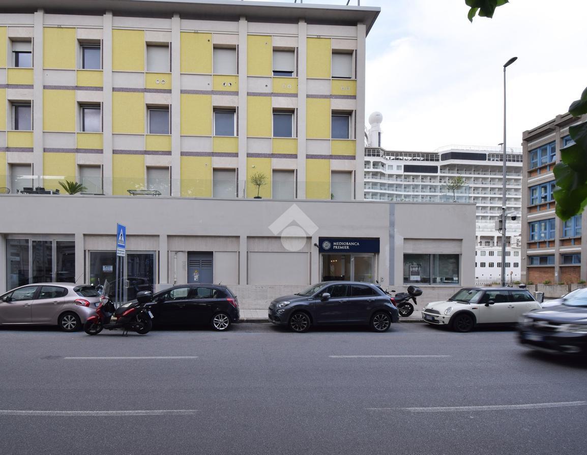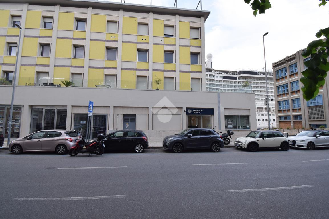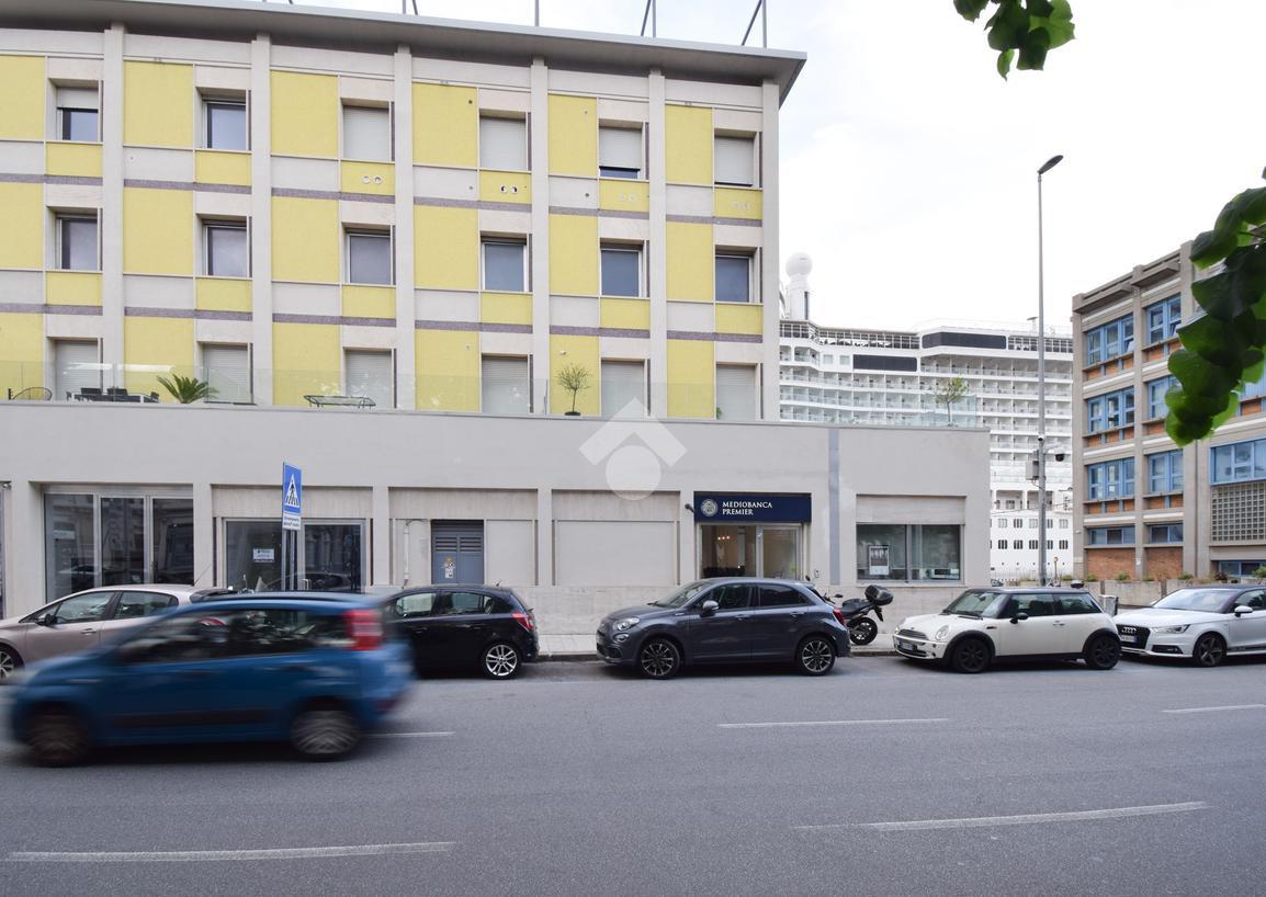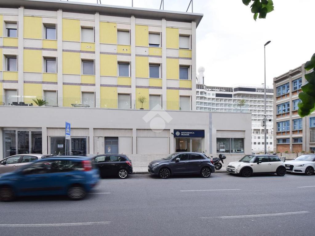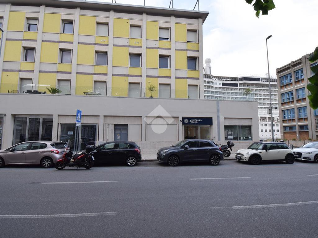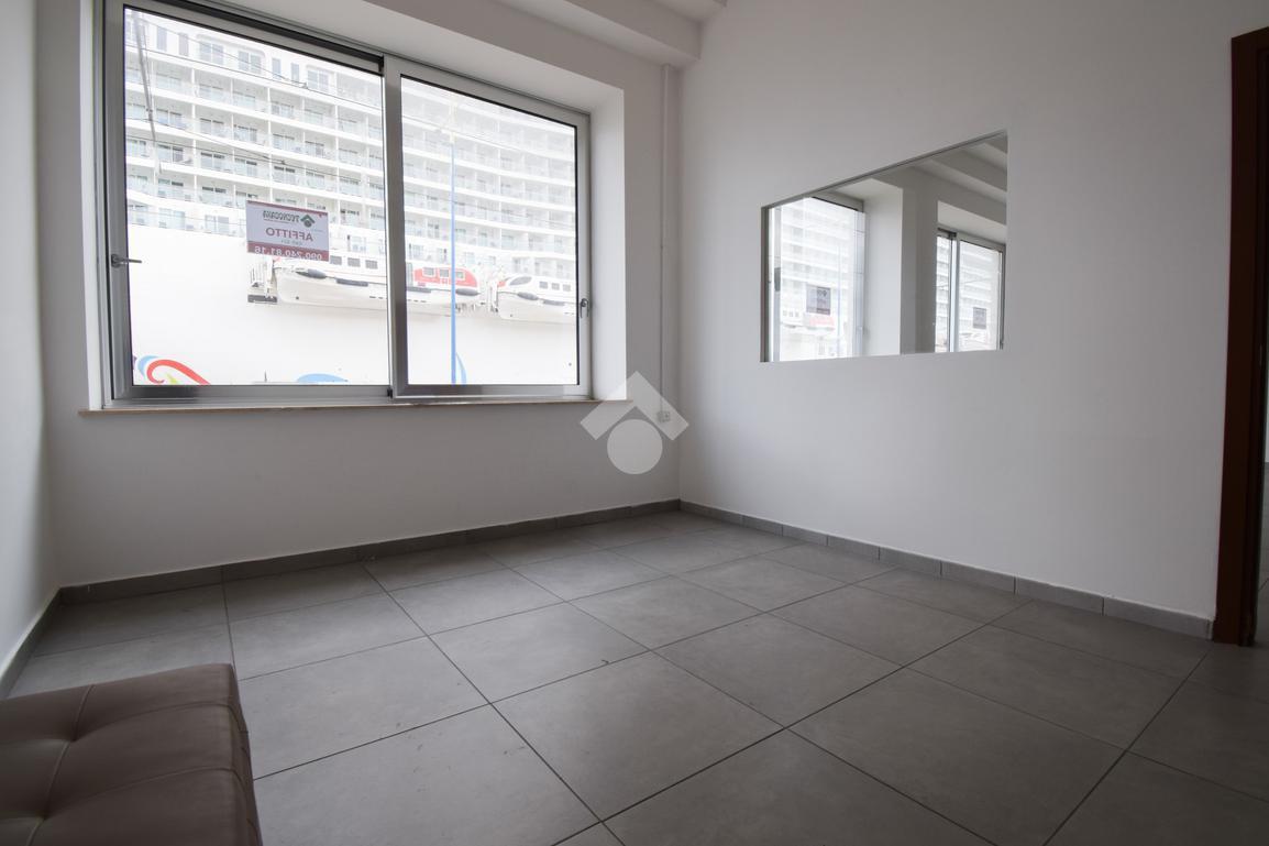 l'immobile vanta una esposizione sulla centralissima Via Garibaldi, con un ampio ingresso, e un'ampia vetrata disposta su 4 luci che offre un suggestivo afaccio panoramico sullo stretto, proprio frontalemte all'attracco delle navi da crocera